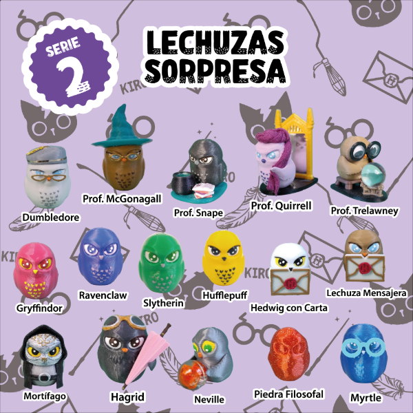 15 motivos diferentes, imitando personajes y distintos colores de lechuzas.