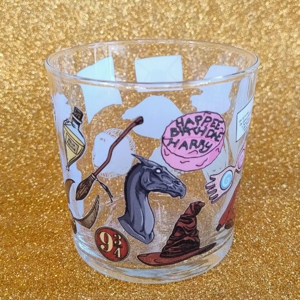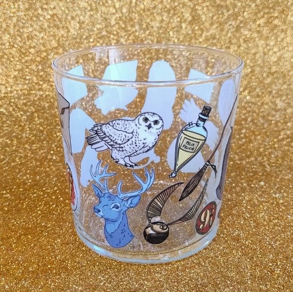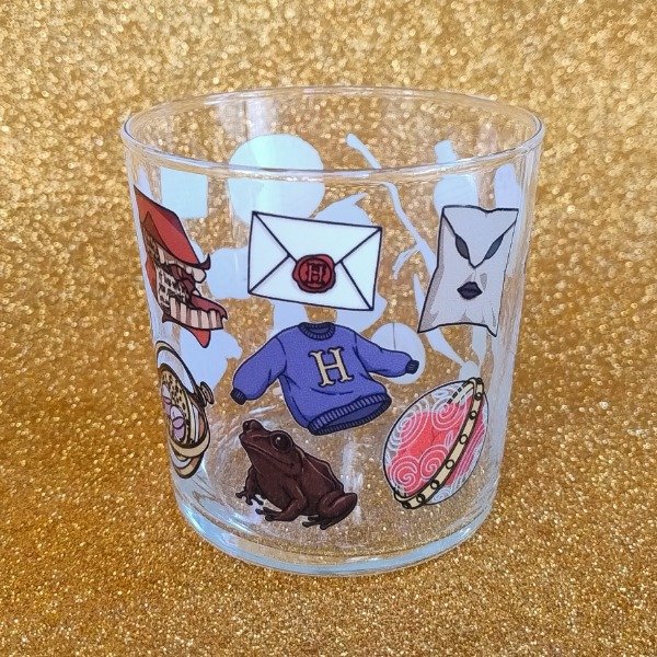Vaso de vidrio con decoración en DTF UV.